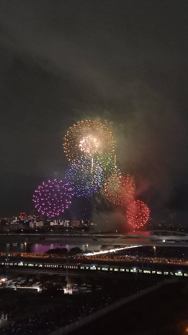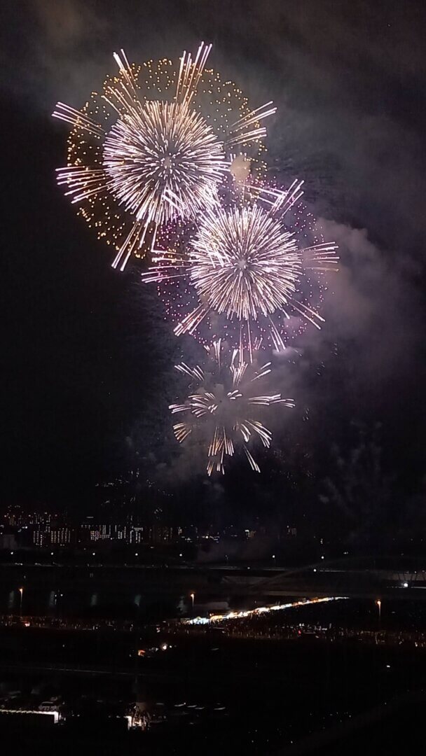今年の花火大会は、後半からゲリラ豪雨にあい、ある意味凄い体験になりましたが、雨が降る前は、こんな感じで↓綺麗に花火を見る事ができました。ちなみに私は【しだれ柳】が一番好きです。他にも、キラキラ光り輝くパステルカラーの花火も美しくて大好きです!