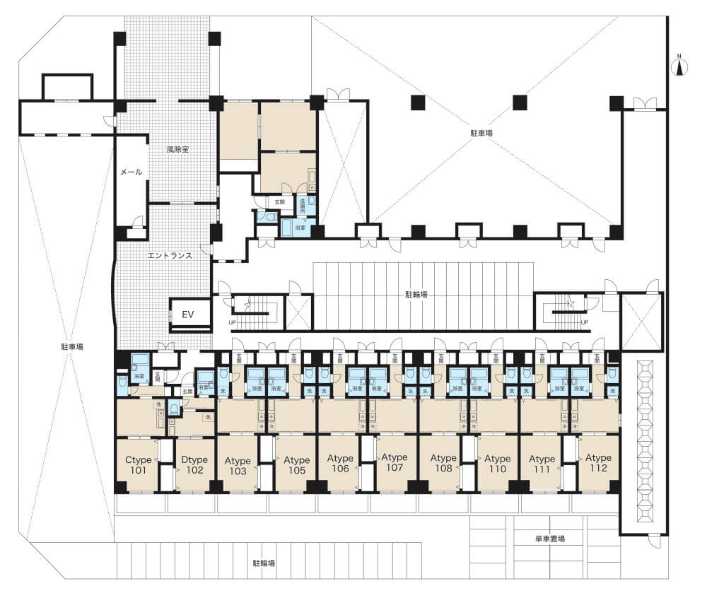 | 共用設備 | エントランス オートロックシステム(非接触キー対応) エレベーター1基(9人乗り) ※エレベーター呼び出し(1階のみ非接触キー対応) ※1階エレベーターホールにモニター設置 防犯カメラ設置 1階エントランスホールにエアコン設置 宅配BOX 非接触キー対応(登録必要:無料) 集合郵便受け 管理人常駐 | ||||